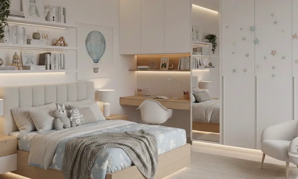 No caso do dormitório infantil planejado, o custo costuma considerar soluções moduláveis e móveis que acompanhem o crescimento da criança, o que representa um investimento mais estratégico a longo prazo. Já projetos focados exclusivamente em armários planejados para dormitório variam conforme a extensão, o tipo de porta, a divisão interna e os acabamentos escolhidos.