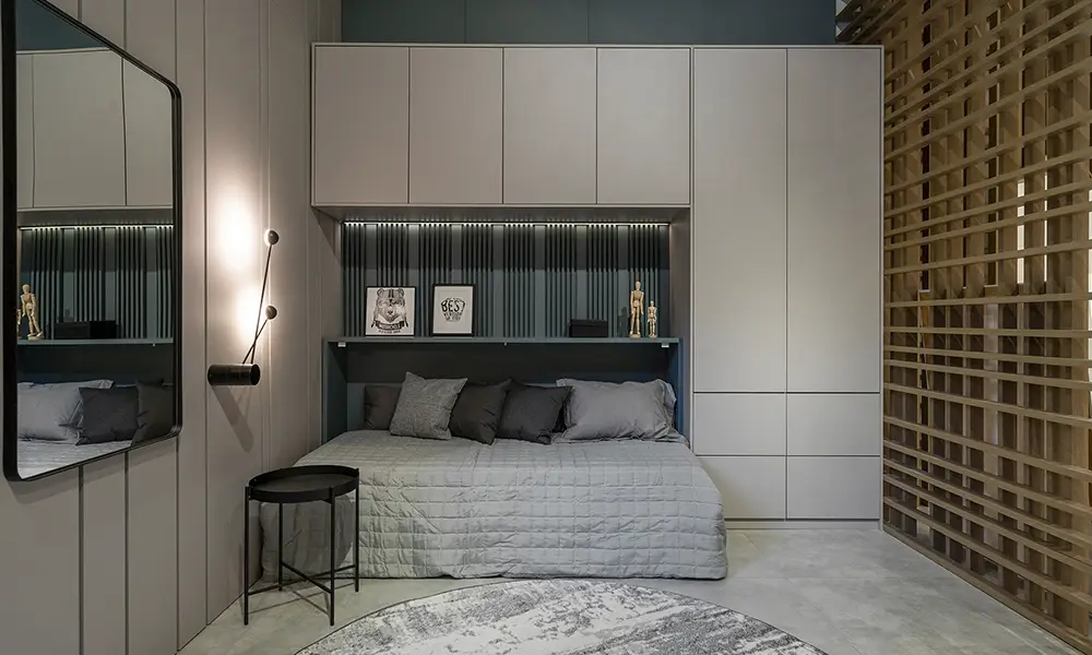 Em quartos menores, o planejamento precisa ser ainda mais preciso. Portas de correr evitam interferência no uso do espaço, espelhos ajudam a ampliar visualmente o ambiente e a divisão interna do armário deve refletir o tipo de roupa e os hábitos de quem utiliza o dormitório. Aproveitar o espaço vertical deixa de ser apenas uma escolha estética e se torna uma solução funcional indispensável.